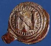 | 2. Nürnbergi „szövetbiléta” ólomból, 3,2cm-es átmérővel. Az elülső oldalon az 1349 óta használt kicsinyitett nürnbergi címer. A hátsó oldalon pedig egy nagy N betű Nürnberg rövidítéseként. |  |