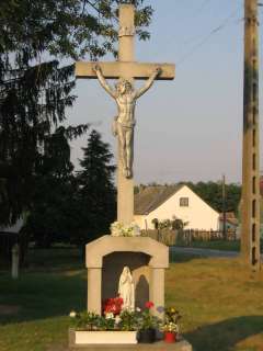 | Fűzfás buszmegálló, és a mellette lévő települést védő kereszt | ![]() |
